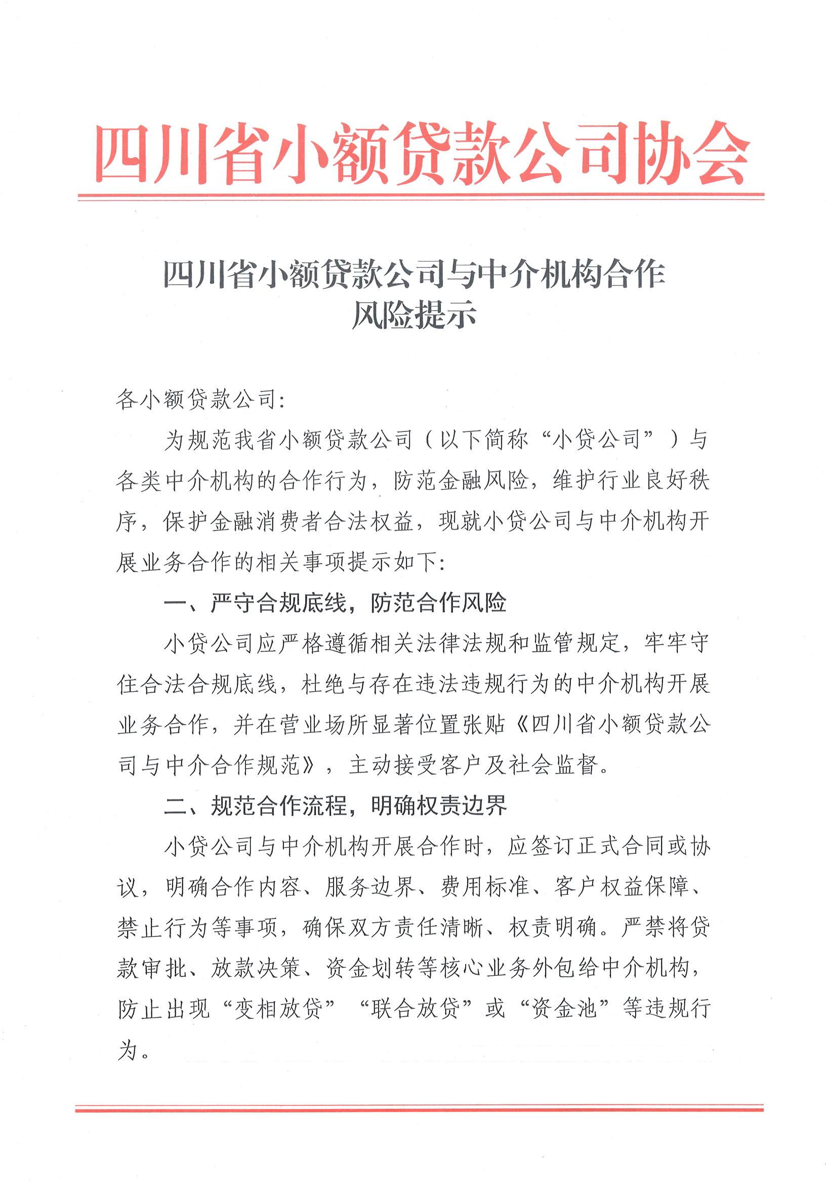 四川省小額貸款公司與中介機(jī)構(gòu)合作風(fēng)險提示